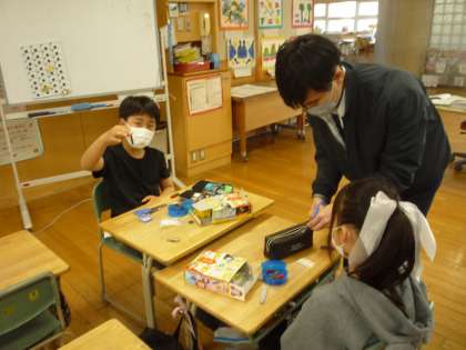 磁石の学習では、一本の磁石が折れたとき、S極とN極はどうなるのか調べています。