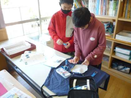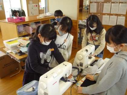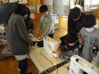 エプロンづくりでは、ミシンの使い方が上手になってきました