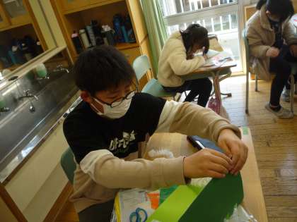 飛び出すメッセージを作っています。カードを開いたとき、どんな風に飛び出すか、何を飛び出させるかを工夫しています。