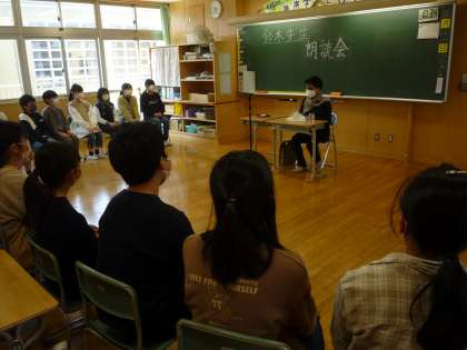 鈴木優子先生の「詩の朗読会」3日目。今日は1組の子供たちの詩を読んでいただきました。自分たちの詩をしんみりと聞き入っていました。