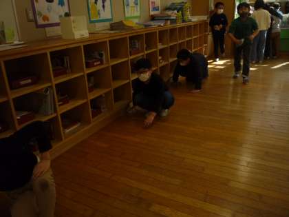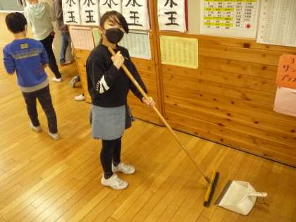 1年間お世話になった教室の大掃除を行いました。濡れ拭きぞうきんで、心を込めて床を磨きました。