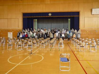 卒業式の歌の練習を全体で行いました。感染対策をしっかり行っての練習です。