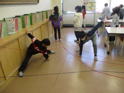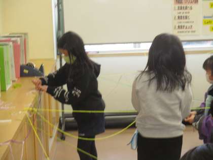 教室が「ひもひもワールド」になりました。