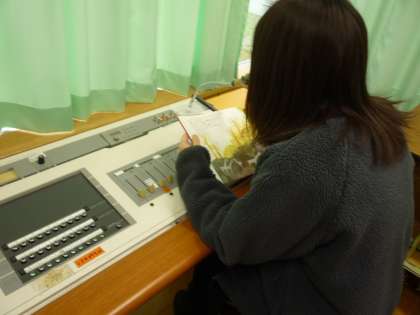 今日の読み聞かせタイムで「くいしんぼうの シマウマ」を読んだのは、この先生です。