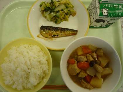 ごはん いわしの生姜味 昆布和え 鶏肉と根菜のごま煮 牛乳