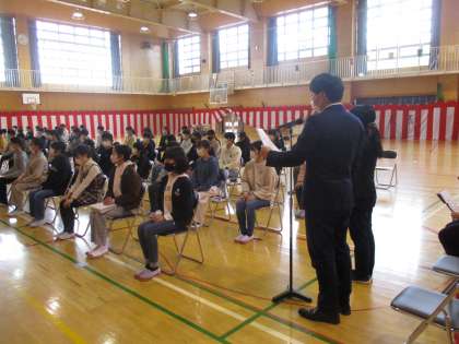6年生の修了式が行われました。各学級の代表児童に修了書を渡しました。
