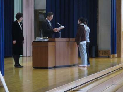 6年生の修了式が行われました。各学級の代表児童に修了書を渡しました。