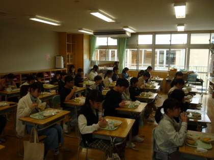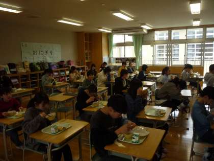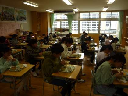 今日は山室小学校での最後の給食でした。ここ2年間はコロナの影響で、グループで会話をしながら楽しく食べることはできませんでした。黙食の中、それでも楽しく食べることができるようにと、放送委員会が歌やクイズ等の工夫したり、先生たちも読み聞かせタイムをしたりしました。