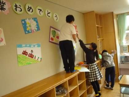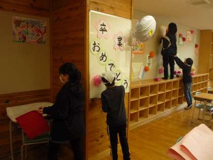 6年生教室の飾り付けを感謝の気持ちをもって取り組んでいます。