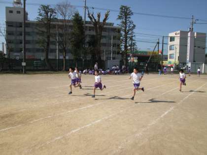 体育の時間に100メートル走に挑戦しました。昨年度より、長い距離にもひるまず走りきっていました。どんどん練習していきましょう。