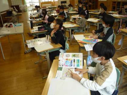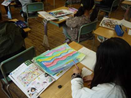 仕上がった作品に、自分の工夫したところや頑張ったところを書きました。