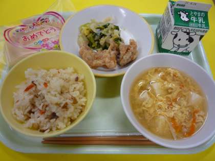 今日は新1年生の入学と在校生の進級を祝う【お祝い献立】です。