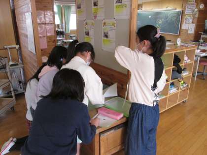 初めての委員会活動に向けて、副委員長を中心にどのような活動をしたいか考えました。休み時間にも自主的に集まって話し合う姿が見られました。