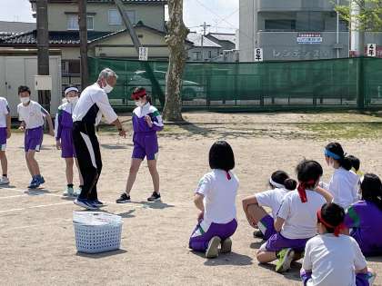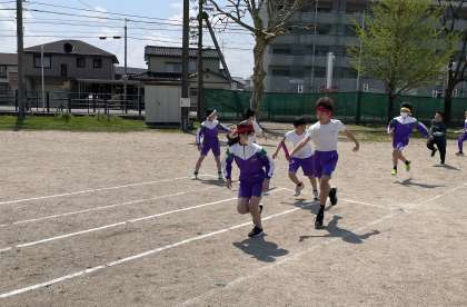 運動会に向けてリレーの練習を始めています。まだまだバトンパスは練習中ですが、一生懸命走っていました。