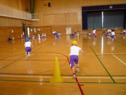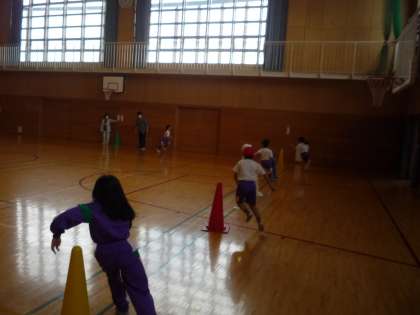 折り返しリレーでは、カニ走り等いろいろな走り方に挑戦しながら競いました。