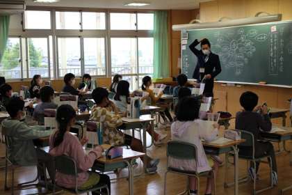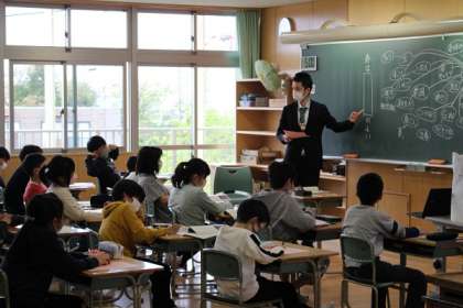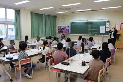 1限目は、1組と3組が国語科「ぼく・わたしの春の空」。2組が外国語科「Hello,friends.」の学習を参観してもらいました。