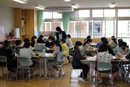 1限目は学習参観。1組は道徳科「『弱い心』をコントロール」。2組は社会科「わたしたちのくらしと日本国憲法」。3組は理科「ものの燃え方」の学習を参観してもらいました。