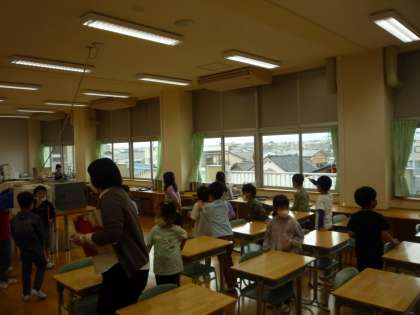 学校探検で、いろいろな教室を見て回っています。