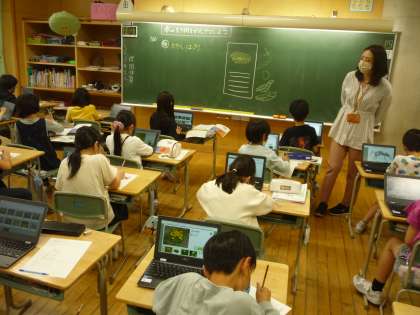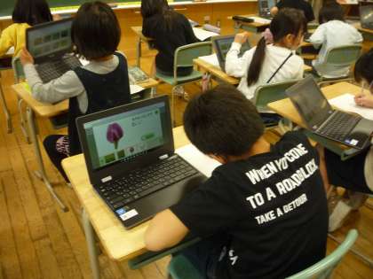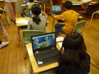 クロムブックを活用し、花の仕組みを詳しく観察しています。