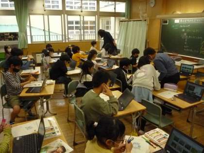 クロムブックを活用した理科の授業や図画工作科の学習の様子です。