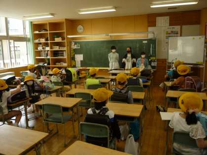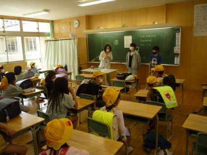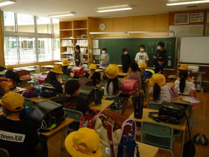 今日は集合時刻や登校の仕方、挨拶の状況等を振り返り、登校班下校します。