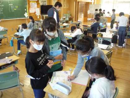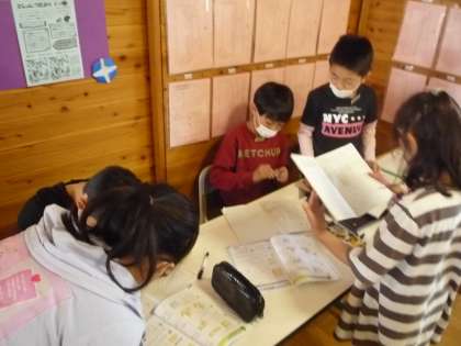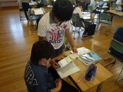 習熟度別学習では、教え合いながらの学習を進めています。友達に教えることで、自分の理解の定着につなげています。