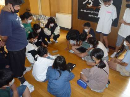 運動会でのグッドリーダーとして、どう団をまとめればよいか、どんな応援がよいかを話し合っています。