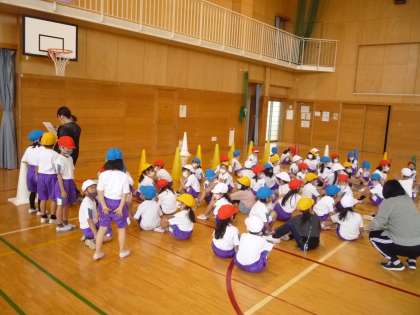 小学校初めての運動会に向け、50m走の走順を決めています。
