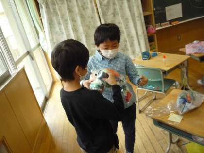 でき上がった作品を紹介し合っています。