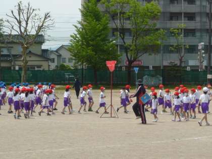 運動会での団体競技「ダンシング玉入れ」の練習に取り組んでいます。