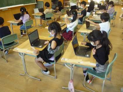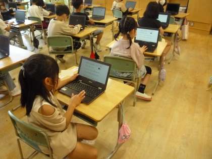 今日は一人でクロムブックを立ち上げました。ログインの仕方やパスワードの入力等、6年生に教えてもらったことを一人でできるようになりました。