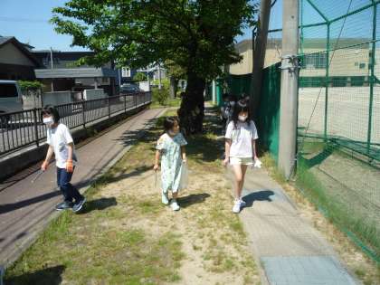 総合的な学習の時間では、環境について学習を進めています。先ずは、身の回りの環境について調べています。