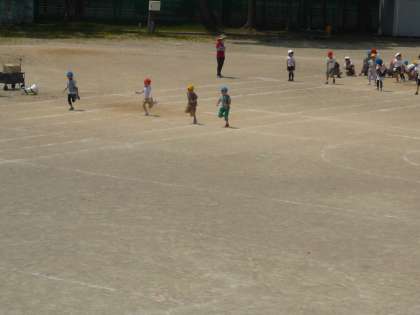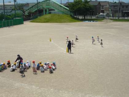50m走の練習です。熱中症対策をしっかりして、望んでいます。