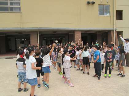 明日は、いよいよ運動会です。3年生は、各団でかけ声を行い、お互いの健闘を祈りあいました。明日は、一人一人が力を出し切り、友達と協力し合ってがんばります。