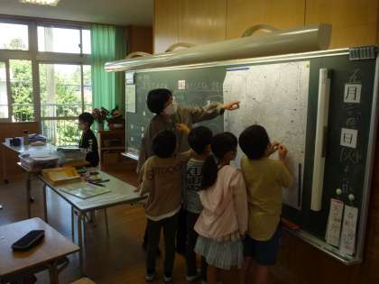 まちたんけんのために、地図で自分の家の場所を確認しています。