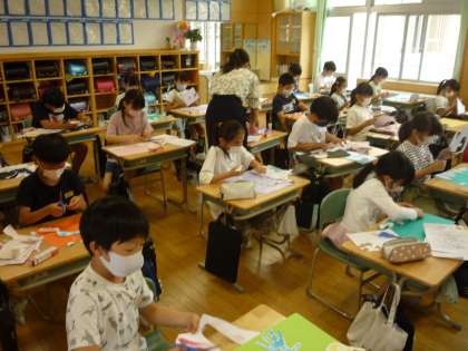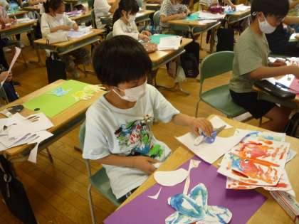 どの作品も画用紙からはみ出るくらいの、迫力ある作品です。
