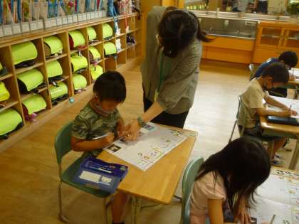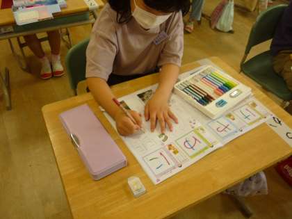 正しい鉛筆の持ち方を意識して、丁寧に書いています。