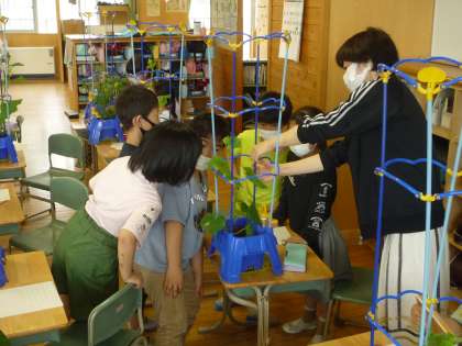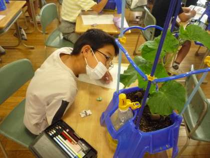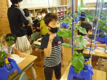 マイ野菜に実が付いてきて、大喜びで観察しています。