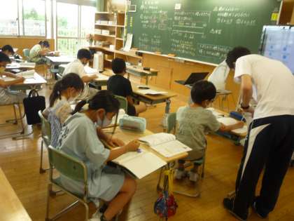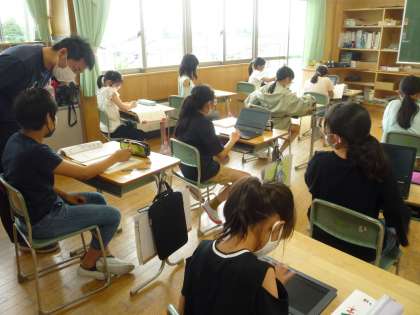 課題が終わった人は、クロムブックをつかって次の問題に挑戦したり、ミニ先生として友達に教えたりして学習を進めています。