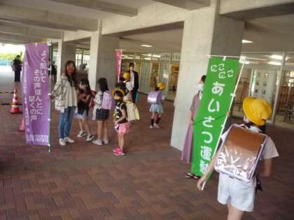 今年度、PTAの方々も挨拶運動に参加してくださり、挨拶でいっぱいの学校を目指します。