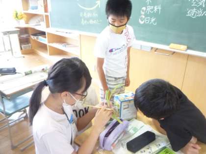 植物の発芽後の成長には何が必要かを考え、どのような実験をすればよいのかを話し合いました。