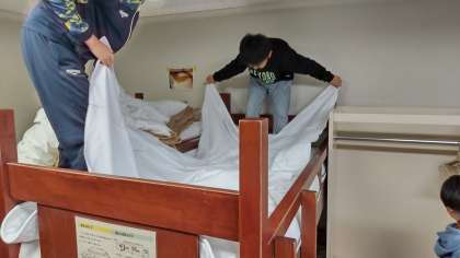 活動だけでなく、生活の場面も宿泊学習の醍醐味です。自分の寝床は、自分で準備しています。