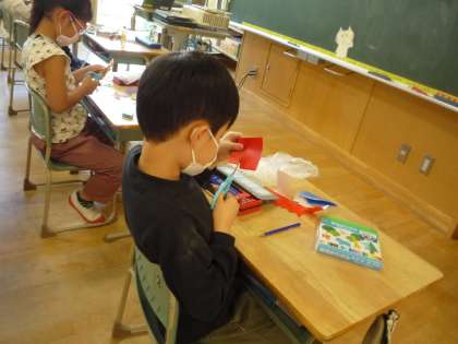 上手にはさみを使っています。どんな模様になるか楽しみです。