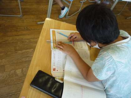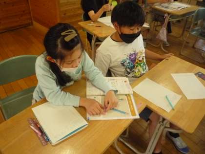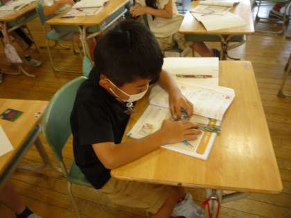 長さの学習で、鉛筆の長さを比べる方法を考えました。