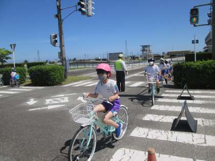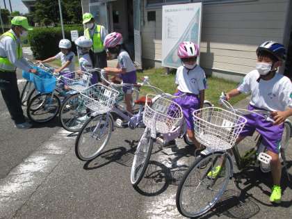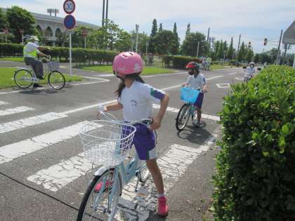富山県交通公園博物館で、自転車のコースを回る実習をしたり、自転車の乗り方や交通ルールを学んだりしました。ブレーキのかけ方や自転車に乗る方向等、「知らなかった!」と驚くようなことも多かったようです。