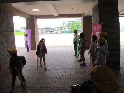 運営委員会の子供たちや愛育会の方々、教職員が、登校してくるみんなを元気な挨拶で出迎えています。