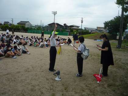 6月の避難訓練を行いました。今日は授業中理科室から出火し、グラウンドに避難する想定でした。