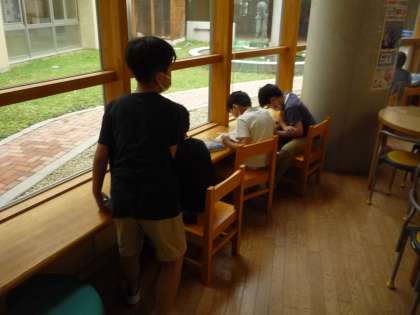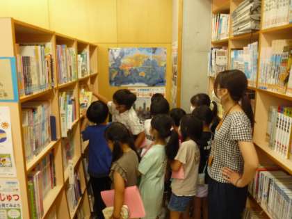 図書室の本を使って、住みよい町や人に優しい町の工夫や施設等を調べています。