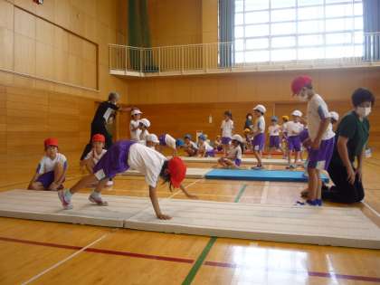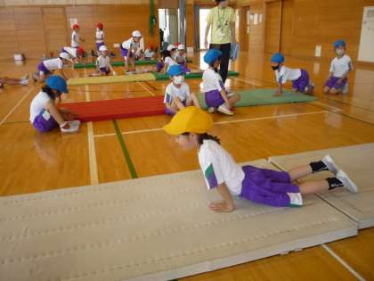 動物歩きに挑戦し、腕の力やバランスを鍛えています。