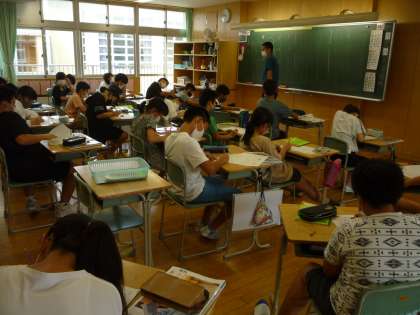 落ち着いた雰囲気の中、学習課題に一生懸命向き合っています。